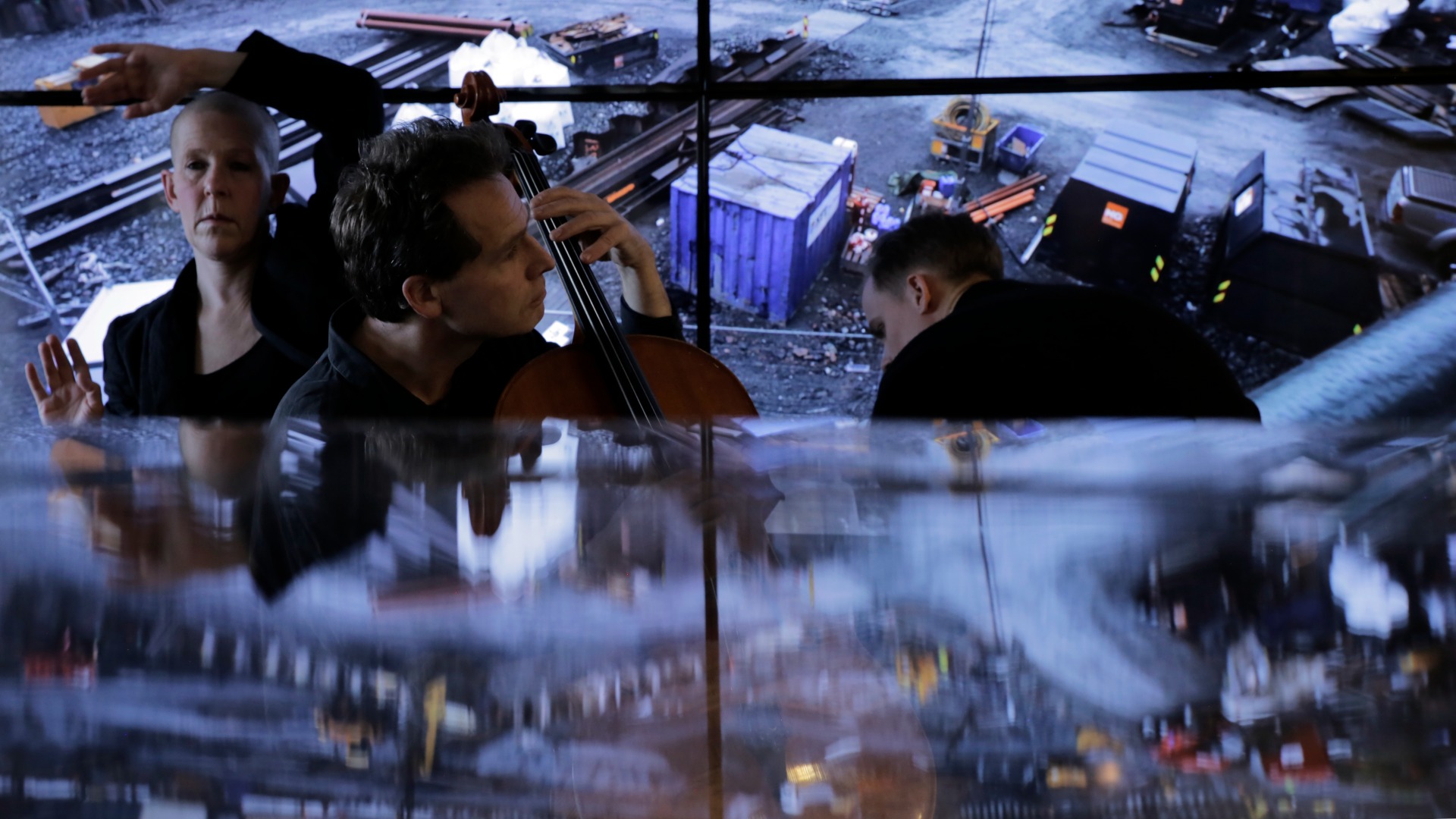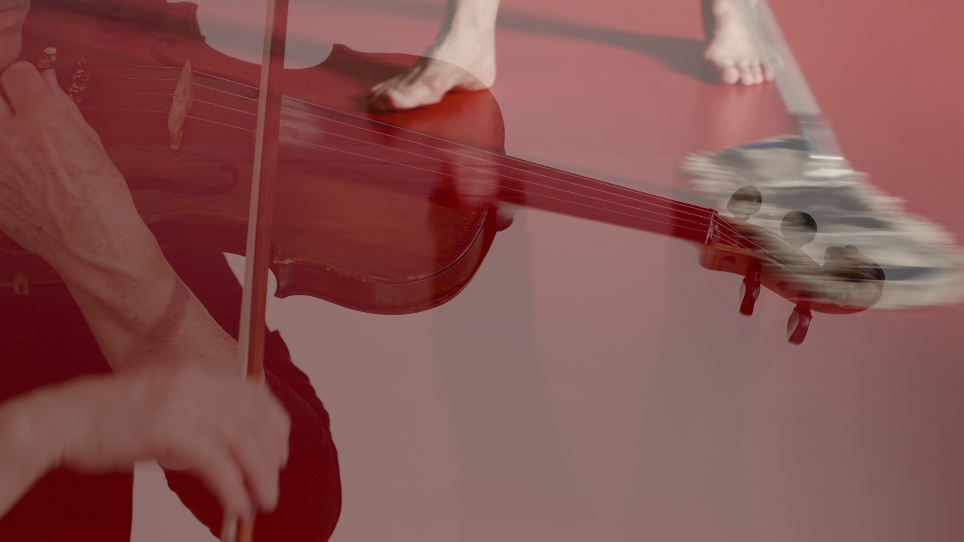 Stillbilde fra kortfilmen 'Pre' (12 min.) fra 2024, basert på min ide og laget i samarbeid med filmskaper Elin Osjord, musiker Hege Rimestad og scenograf Turid Ousland. Den handlet om alt som skjer FØR 'teppet går opp': kamerautstyr monteres, gulv moppes, fioliner stemmes, scenografi rulles ut ... Visninger i 2025 på Multiplié dansefilmfestival i Trondheim, i foyeren på Dansens Hus 23.-27. april, i forbindelse med Dansens Dager, og på Riff dansefilmfestival på Eina. Stillfoto: Elin Osjord