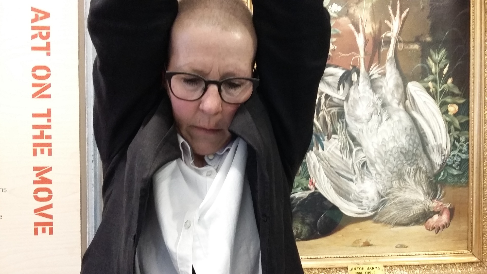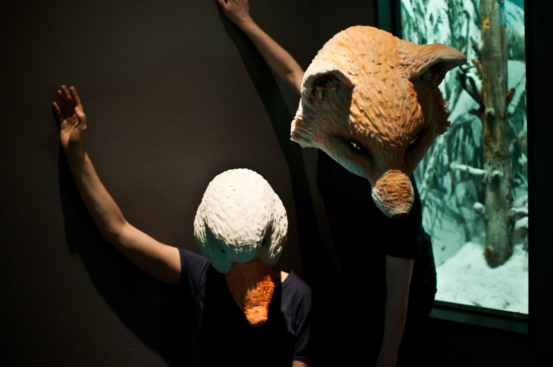 'Gåsehud - et maskespill'. Konsept og utøver. Samarbeid med danser Marianne Kjærsund. Dyremasker og foto: Turid Ousland. Stedsspesifikt prosjekt i 'den norske salen' på Zoologisk Museum i Oslo i mai 2014