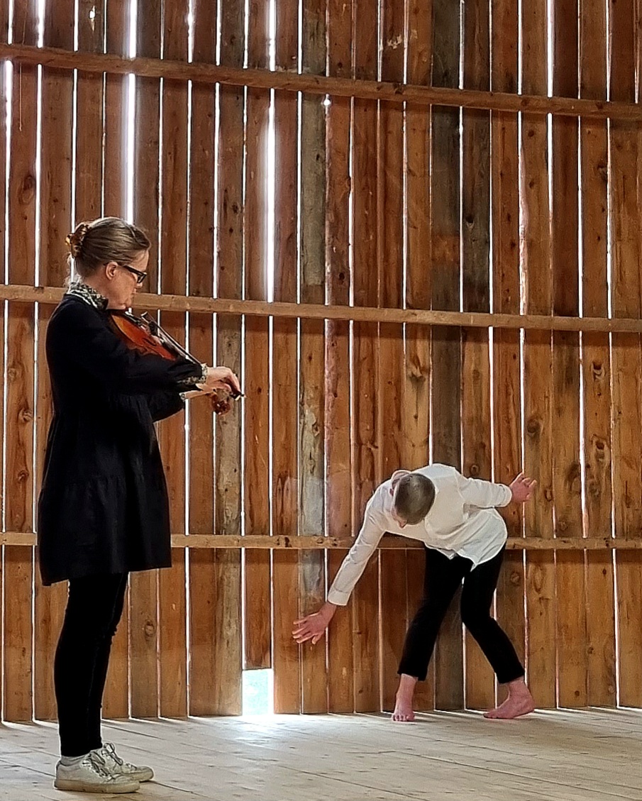 Sammen med fiolinist Kari Rønnekleiv var jeg på residens på Snekkarlemmen Kulturlåve i Tolga i juli 2022. Vi gjorde et stedsspesifikt improvisasjonsprosjekt her, som vi kalte 'All you need is låvve'. Foto: Turid Ousland