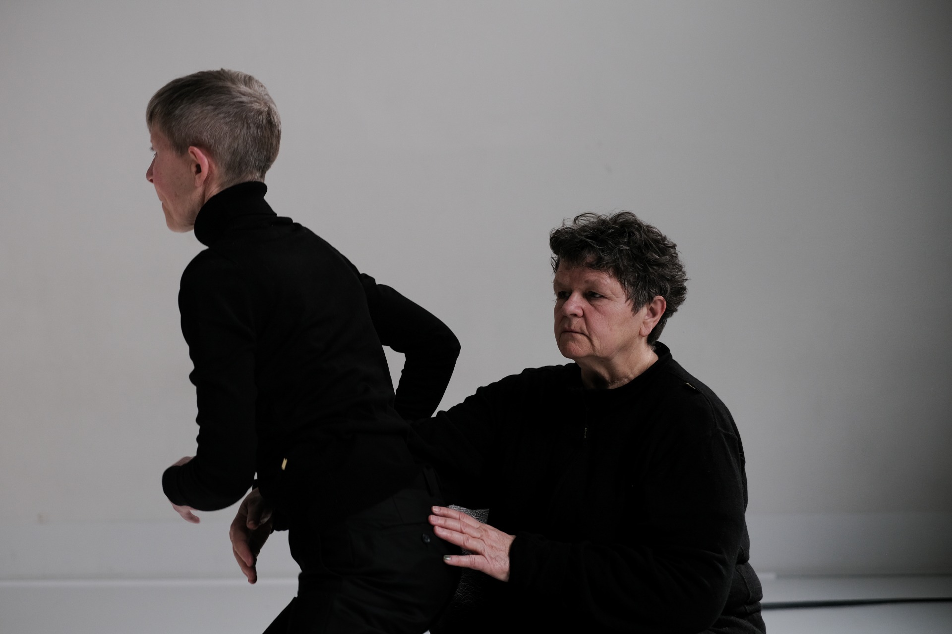 Fra 'Vi er Or' på Scenehuset i 2023. Her med dansekunstner Terje Tjøme Mossige. Øvrige medvirkende: skuespiller Kjersti Fjeldstad, komponist og musiker Tov Ramstad, og scenograf Turid Ousland. Stykke er basert på mitt manus ved samme navn. Foto: Elisabeth Kjeldahl Nilsson